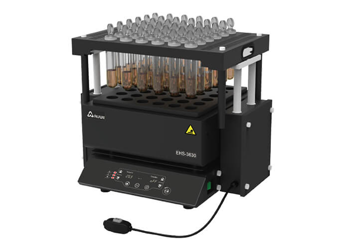 EH 系列防腐型石墨消解儀是一款適合在高濃度酸霧環(huán)境中進(jìn)行樣品消解的樣品前處理設(shè)備,可以支持多達(dá)60個樣品的同時處理,充分滿足批量樣品處理需求。階梯程序控溫,自動完成消解、趕酸工作步驟,最大程度減少實(shí)驗(yàn)人員與酸氣接觸。