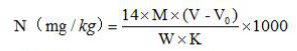 V-樣品滴定標準酸消耗量(mL),精確到小數(shù)點后四位