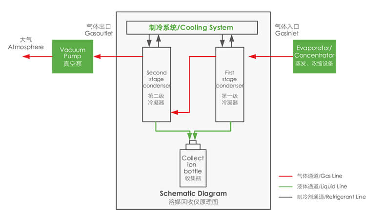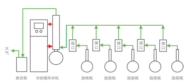 高效冷凝、減少污染 陣列旋轉蒸發(fā)儀可以選擇 eSR 系列溶媒回收儀用于溶劑蒸汽冷凝回收,溶媒回收儀的多級直接冷凝技術可以將溶劑蒸汽高效的液化收集,減少溶劑蒸汽排放。eSR 系列溶媒回收不需要添加冷卻循環(huán)液,也不需要連接玻璃冷凝器,開機即用,操作維護更簡單。